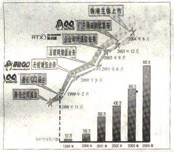 正是憑借著這些優(yōu)勢(shì),即時(shí)通信吸引聚集著一些忠誠用戶,并開始搭建網(wǎng)絡(luò)廣告、無線增值等一系列各種潛在的交易平臺(tái)?梢韵胂,一個(gè)絕佳的聊天窗口同時(shí)也是一個(gè)方便的交易窗口和暢通的付費(fèi)入口,即時(shí)通信正在摸索一條前所未有的盈利模式。有專家指出,經(jīng)過近5年的曲折前行,即時(shí)通信的盈利模式將在2005年逐步明確。以騰訊QQ為例,我們來剖析一下即時(shí)通信的盈利模式是如何由模糊走向清晰的。從1999年2月QQ發(fā)布到2000年5月,QQ迅速聚攏了10萬用戶。2000年8月,騰訊公司同廣東移動(dòng)合作,僅僅用了一年就扭虧為盈,實(shí)現(xiàn)了1000萬人民幣的純利潤。
