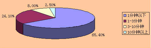 “彩話”業(yè)務(wù)主要應(yīng)用是主叫方為了通話中的和諧溝通而設(shè)置的,因此它與通話時長具有正相關(guān)性,一般短暫的工作式或通知式的通話無須主叫方設(shè)置背景音效。根據(jù)信息產(chǎn)業(yè)部提供的《電信資費聽證會資料》,國家統(tǒng)計局對全國24個大、中、小城市電話用戶通話時長進行了調(diào)查,調(diào)查結(jié)果見圖1所示。
