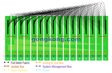 這是一種全新的數(shù)據連接結構,在這種"交換結構"的支持下,任何一次數(shù)據釋放,不管它在哪一個連接器的哪一個Pin,都有一條單向的數(shù)據通路通向任何它想去的連接器的任何Pin。這種數(shù)據連接是通過一種交換元件動態(tài)地對數(shù)據通路進行連接和斷開,從而實現(xiàn)高速數(shù)據傳輸。
