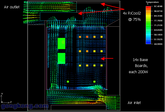 根據13U ATCA Shelf,威圖公司做了熱量以及風量的模擬分析: