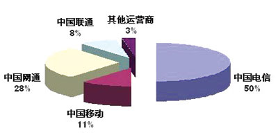 2005年中國NGN收入的主要的市場(chǎng)份額獲得者是在固網(wǎng)資源上有絕對(duì)優(yōu)勢(shì)地位的中國電信,其次是網(wǎng)通,2006年以后隨著3G網(wǎng)絡(luò)的部署,廣義的NGN業(yè)務(wù)的收入上,中國移動(dòng)的市場(chǎng)份額會(huì)逐步上升。