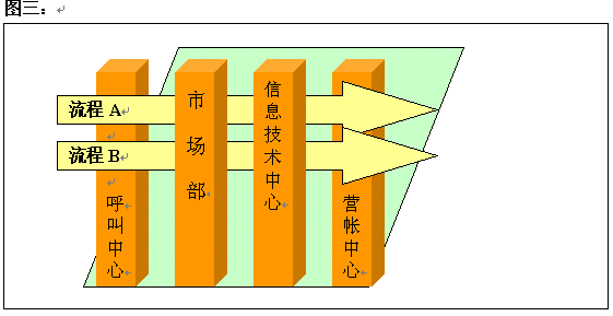 事實(shí)上,一個(gè)電話銷(xiāo)售流程在執(zhí)行的時(shí)候可能會(huì)牽涉到若干個(gè)部門(mén),而每一個(gè)部門(mén)都會(huì)介入到不同的流程當(dāng)中(圖三)。因此在設(shè)計(jì)這些跨部門(mén)的流程時(shí),每個(gè)環(huán)節(jié)的輸出成果將在很大程度上決定了流程的執(zhí)行效果,這個(gè)輸出成果包括時(shí)限和輸出記錄。例如以移動(dòng)行業(yè)的電話銷(xiāo)售項(xiàng)目為例,由于市場(chǎng)競(jìng)爭(zhēng)的激烈,項(xiàng)目的實(shí)效性就變得尤為重要。當(dāng)項(xiàng)目發(fā)起部門(mén)(通常是市場(chǎng)部)策劃一個(gè)電話銷(xiāo)售項(xiàng)目的時(shí)候,通常需要各部門(mén)進(jìn)行一些配合工作,例如需要信息技術(shù)中心提供測(cè)試名單,需要呼叫中心提供銷(xiāo)售項(xiàng)目的文稿及其他相關(guān)文檔等,這些活動(dòng)是在每個(gè)電話銷(xiāo)售項(xiàng)目中都可能會(huì)遇到的一些重復(fù)性工作,如果每次大家都來(lái)就這些問(wèn)題進(jìn)行溝通,勢(shì)必影響工作效率。因此,在流程設(shè)計(jì)上,就要和相關(guān)部門(mén)一起來(lái)討論,確定每個(gè)環(huán)節(jié)完成需要的工作時(shí)間及輸出的成果和記錄。這樣將來(lái)各個(gè)部門(mén)就可以按照流程的指引來(lái)有序的工作。