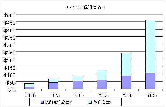隨著網(wǎng)絡(luò)會議和實(shí)時通信成為桌面會議的首選之品以及在這些應(yīng)用中增加了視頻、網(wǎng)關(guān)服務(wù)器成為遠(yuǎn)程ISDN系統(tǒng)的接入點(diǎn),企業(yè)個人會議將迅速轉(zhuǎn)入到全I(xiàn)P、全軟件——編碼譯碼市場。同時我們還認(rèn)為:幾年后,網(wǎng)絡(luò)會議對市場的這種主要沖擊力將會淡出。