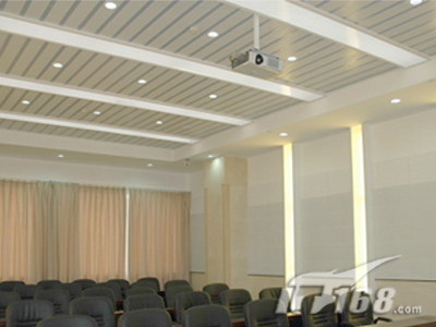 在副會(huì)場(chǎng)方面,和主會(huì)場(chǎng)區(qū)別不大,不過比主會(huì)場(chǎng)要光亮一點(diǎn),面積也小了很多,所以主顯示系統(tǒng)只需要SONY PX40正面投影(120寸)就可以搞定。VPL-PX40可以多種方式安裝,包括桌面正投,吊頂及背投。供選購的兩款鏡頭擴(kuò)展了安裝的靈活性。中央控制開關(guān)功能讓用戶能通過中央電源開關(guān)直接開關(guān)投影機(jī)。VPL-PX40還配備了獨(dú)特的密碼認(rèn)證系統(tǒng),采用SONY液晶板的新型光學(xué)系統(tǒng),結(jié)合265W