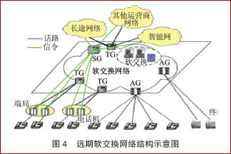 隨著PSTN用戶逐步轉(zhuǎn)變?yōu)檐浗粨Q網(wǎng)絡(luò)用戶,未來以軟交換網(wǎng)絡(luò)為核心、PSTN端局作為接入的網(wǎng)絡(luò)結(jié)構(gòu)將逐步形成。如圖4所示,軟交換網(wǎng)絡(luò)將覆蓋包括PSTN用戶在內(nèi)的各種類型的用戶終端,具有SSP功能,提供智能網(wǎng)業(yè)務(wù);具備大容量關(guān)口局功能,實現(xiàn)與其他運(yùn)營商網(wǎng)絡(luò)的互通。