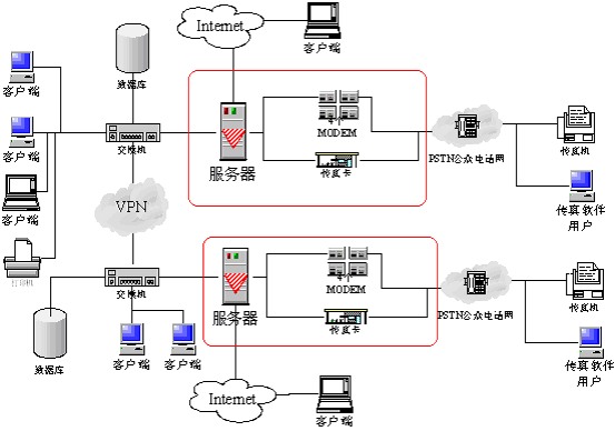 上圖中紅色框架為gotoneFax系統(tǒng)。它可以很方便的融入目前企業(yè)的網(wǎng)絡(luò)中,擴(kuò)張您目前網(wǎng)絡(luò)的功能,為您提供及時(shí)的服務(wù)。當(dāng)然這也是我們的愿望。
