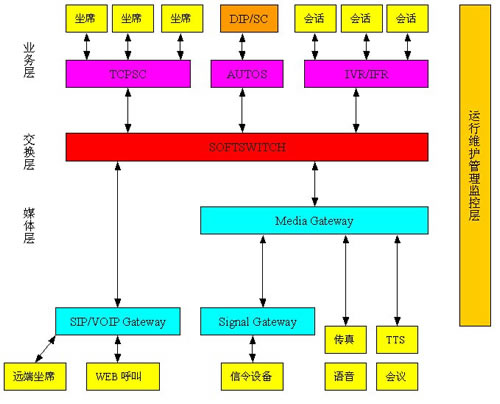 2003 Server操作系統(tǒng)上的平臺軟件實現(xiàn)CallCenter所需的功能:ACD,CTI,IVR。CT Ways與傳統(tǒng)CallCenter平臺的在軟件方面的最大區(qū)別是平臺軟件運行在網(wǎng)格計算環(huán)境下,TCP/IP作為網(wǎng)絡(luò)通信協(xié)議。在硬件方面的區(qū)別是IVR硬件資源可與信令及交換資源合用。