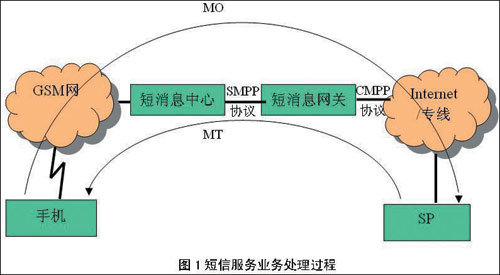 用戶收短信業(yè)務(即MT業(yè)務,如短信群發(fā)等):提供此項業(yè)務的SP將短信內容以CMPP協(xié)議發(fā)給連接的短信網關,由短信網關根據用戶手機號段以SMPP協(xié)議發(fā)給用戶所屬的短信中心;