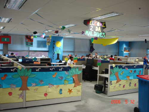 由于這種獨(dú)特的管理方式吸引了眾多的同行前來(lái)參觀,該中心特別安排了熱情的Sally負(fù)責(zé)導(dǎo)游。Sally帶我們參觀說(shuō)的第一句話就是:“我真是喜愛(ài)我們的呼叫中心,這里的年輕人富有創(chuàng)意,充滿激情,他們非常喜歡在這里工作!庇谑俏覀儏⒂^了“蜘蛛俠”,“蒙娜麗莎”,“大英帝國(guó)”,“典雅餐廳”,“熱帶公園”,“幾何世界”,“海底世界”,“白色圣誕節(jié)”等不同的Pod,實(shí)在是好像到了聯(lián)合國(guó)。