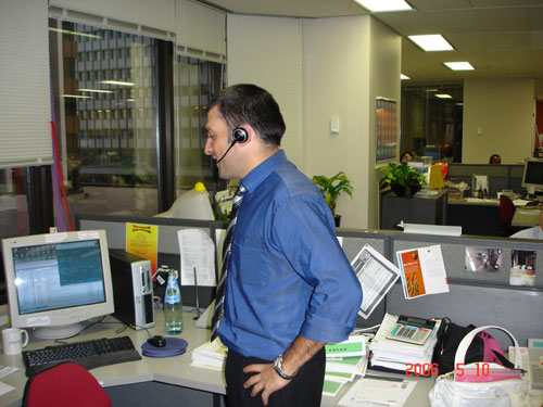 Colonial公司是一家大型的銀行業(yè)務(wù)呼叫中心,座落在悉尼市區(qū)最熱鬧的喬治大街附近,相當(dāng)于我們的上;春B贰_@里的幾百個(gè)座席分布在寫(xiě)字樓的好幾個(gè)樓面,所有座席都是使用大北歐的無(wú)線耳嘜-GN9120。筆者記得上月去東京參觀HONDA的呼叫中心,那里只有不到三十個(gè)一線的座席代表使用無(wú)線耳嘜,這里則是所有人都配備了這種先進(jìn)的無(wú)線設(shè)備。筆者看到不少員工站著工作,還有少數(shù)走動(dòng)辦公,員工在座位上可以輕松轉(zhuǎn)身,隨時(shí)調(diào)整姿勢(shì),讓身體處于松弛狀態(tài),這種輕松自如想必電話線那頭的客戶也感同身受。呼叫中心的經(jīng)理Venessa告訴筆者,這里的服務(wù)內(nèi)容比較豐富,對(duì)員工的業(yè)務(wù)能力要求很高,所以他們?yōu)閱T工提供一流的工作環(huán)境以減少人員流失率,降低招聘和培訓(xùn)成本,提高客戶滿意度。