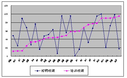 我們通過(guò)分析,圖3顯示,員工的培訓(xùn)成績(jī)和其工作績(jī)效是無(wú)關(guān)的,這說(shuō)明培訓(xùn)是無(wú)效的。無(wú)效的原因也許是由于培訓(xùn)內(nèi)容不合理或培訓(xùn)組織實(shí)施不善等原因,總之培訓(xùn)是無(wú)效的,需要改進(jìn)。
