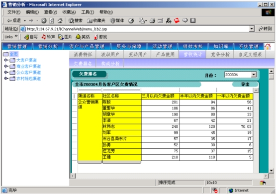 本系統(tǒng)通過(guò)對(duì)本地計(jì)費(fèi)帳務(wù)系統(tǒng)、網(wǎng)間結(jié)算系統(tǒng)、1000號(hào)客戶服務(wù)系統(tǒng)、“九七工程”系統(tǒng)、資源管理系統(tǒng)的動(dòng)態(tài)相關(guān)數(shù)據(jù)的提取,按日(天)記錄并分析開(kāi)展?fàn)I銷服務(wù)工作所需的客戶基本資料、客戶關(guān)系資料、客戶收入信息、客戶消費(fèi)行為信息、客戶變動(dòng)信息、客戶障礙信息、客戶投訴信息、客戶競(jìng)爭(zhēng)動(dòng)態(tài)信息等支撐信息,指導(dǎo)各類客戶經(jīng)理開(kāi)展有針對(duì)性營(yíng)銷服務(wù)工作。