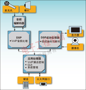當今應用處理器的處理能力的增加使得我們能使用先進的操作系統(tǒng)環(huán)境,例如嵌入式Linux來有效地將V2IP系統(tǒng)中需要的控制和媒體處理進行劃分。這反過來又使得使用單一處理器和工具鏈的軟件開發(fā)更加簡單,由于減少了一個或更多的昂貴DSP而降低了成本。