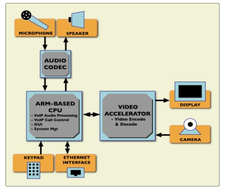 自從第一代的IP可視電話推出以來,通用應用處理器的處理能力已經(jīng)提高到能將所有通常用DSP實現(xiàn)的語音處理器任務由應用處理器實現(xiàn)。特別對于Wi-Fi可視電話市場來說,這是一個非常重要的進步,因為無線連接的設備基本的需求是降低功耗,最大化電池壽命。