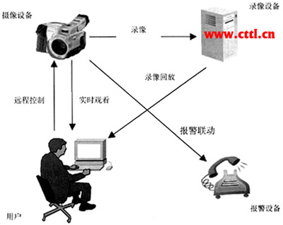視頻監(jiān)控的基本業(yè)務功能是提供實時監(jiān)視的手段,并對被監(jiān)視的畫面進行錄像存儲,以便事后回放。在此基礎上,高級的視頻監(jiān)控系統(tǒng)可以對監(jiān)控裝置進行遠程控制,并能接收報警信號,進行報警觸發(fā)與聯(lián)動。業(yè)務功能如圖1所示。