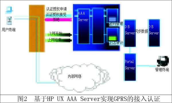 目前有很多Radius軟件可以實現(xiàn)這個功能。如: 基于HP UX AAA Server實現(xiàn)GPRS接入認(rèn)證的邏輯結(jié)構(gòu)如圖2。