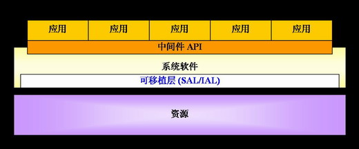 應(yīng)用層不直接調(diào)用和操作資源,而是由系統(tǒng)軟件層對(duì)資源進(jìn)行抽象和封裝,提供給應(yīng)用層調(diào)用。這個(gè)中間層分離了硬件和應(yīng)用層,使應(yīng)用層具有非常強(qiáng)的可移植性。系統(tǒng)軟件層主要包括中間件核心層模塊和可移植層模塊。
