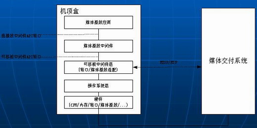 位于IPTV設(shè)備底層系統(tǒng)資源(包括硬件、操作系統(tǒng)和網(wǎng)絡(luò)資源)和應(yīng)用程序之間的獨(dú)立的系統(tǒng)軟件或通用服務(wù)程序;