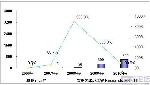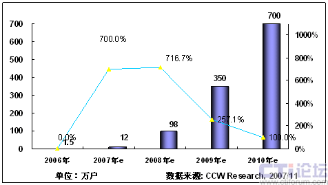2008年,隨著3G在中國商用,以及奧運帶來豐富視頻內(nèi)容,將推動手機(jī)電視作為一項重要的移動增值業(yè)務(wù)將進(jìn)入市場發(fā)展期;同時隨著網(wǎng)絡(luò)、終端、內(nèi)容、商業(yè)模式等因素的發(fā)展,產(chǎn)業(yè)鏈初步完善,看好手機(jī)電視業(yè)務(wù)的產(chǎn)業(yè)鏈各環(huán)節(jié)大力介入,北京奧運會將大大激發(fā)用戶使用手機(jī)電視業(yè)務(wù)的熱情,從而推動手機(jī)電視進(jìn)入快速發(fā)展階段。根據(jù)計世資訊預(yù)計,2008年中國手機(jī)電視用戶將達(dá)到400萬。