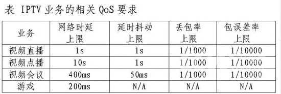IPTV業(yè)務對時延也有一定的要求(參見附表):