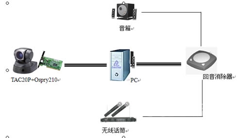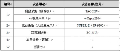 設(shè)備要求:攝像機、投影儀、音箱(配"回音消除器")、麥克風(fēng)。