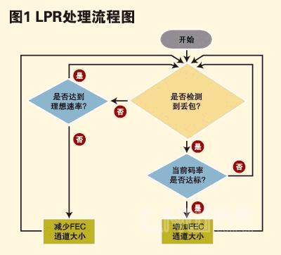不同于大多數(shù)差錯隱消或規(guī)避算法只介入接收丟包信息系統(tǒng)的方式,LPR會介入到視頻通話中的各級系統(tǒng)中,通過臨時將一部分通話帶寬分配給一個數(shù)據(jù)通道,從而用于發(fā)送FEC數(shù)據(jù)給接收系統(tǒng)來發(fā)揮作用。在網(wǎng)絡傳輸發(fā)生丟包時,通過上述的一個循環(huán)處理,LPR就會增加或減少FEC數(shù)據(jù)通道的大小,直到找到必須分配給FEC數(shù)據(jù)通道的最小帶寬,從而使得接收系統(tǒng)能夠恢復所有丟失的數(shù)據(jù)包。