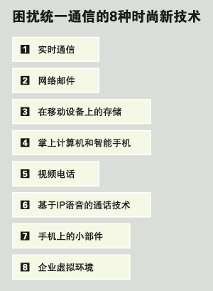 在最近由調(diào)查機(jī)構(gòu)Yankee Groupe針對企業(yè)用戶進(jìn)行的一項關(guān)于當(dāng)前一些最時尚新技術(shù)應(yīng)用狀況的調(diào)查中,受訪的500名被調(diào)查者中有86%承認(rèn),在工作場所,他們不止一次地使用了被調(diào)查的8種“時尚新技術(shù)”中的一種或幾種。這些設(shè)備和技術(shù)在其應(yīng)用部署的目標(biāo)上,一方面是出于業(yè)務(wù)創(chuàng)新的需求,另一方面則是出于對提升現(xiàn)有生產(chǎn)效率的考慮。
