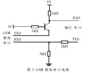 (2)串行接口電路的設(shè)計。GSM模塊的串行口(UART)使用的不是標(biāo)準(zhǔn)的TTL電平,不能與控制它的MCU串口直接相連,在它們之間要有一個電平轉(zhuǎn)換接口電路。該電路要能實現(xiàn)模塊的3V高電平與
