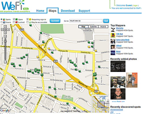 WeFi網站上的熱點地圖