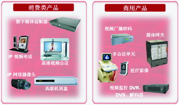 轉(zhuǎn)碼技術(shù)將用來滿足更廣泛領(lǐng)域的數(shù)字視頻多制式轉(zhuǎn)換需求,不僅應(yīng)用于包括視頻廣播轉(zhuǎn)碼、媒體網(wǎng)管、多會(huì)議單元 、醫(yī)療影響和視頻監(jiān)控等商用產(chǎn)品中,而且也將用于包括數(shù)字媒體適配器、高清視頻會(huì)議終端、高級(jí)數(shù)字機(jī)頂盒、IP視頻電話和高清網(wǎng)絡(luò)攝像機(jī)等消費(fèi)類產(chǎn)品。如圖1所示,在商用產(chǎn)品中轉(zhuǎn)碼技術(shù)支持更高密度非常必要,而在消費(fèi)類產(chǎn)品中轉(zhuǎn)碼技術(shù)的單片高性價(jià)比則必需。
