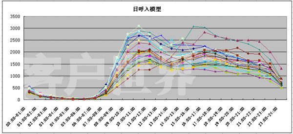 根據(jù)每時段呼入的真實號碼數(shù)情況,可得出日呼入話務(wù)的基礎(chǔ)模型,如下圖: