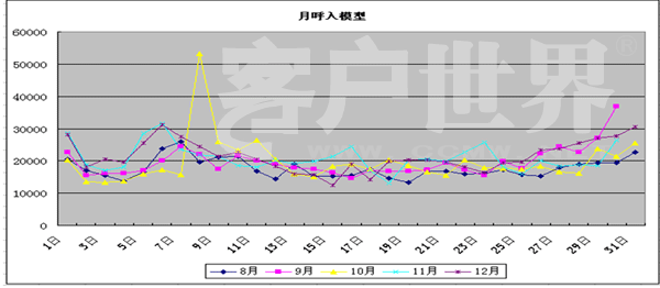 根據(jù)每日呼入的真實號碼數(shù),可得出月呼入話務(wù)的基礎(chǔ)模型,如下圖: