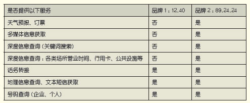 而另一家歐洲領(lǐng)先的電話信息查詢運(yùn)營商意大利SEAT Pagine Gialle則細(xì)分客戶需求,推出從基本號碼服務(wù)到地理信息搜索、預(yù)定等一系列服務(wù),并通過中低端(12.40)和中高端(89.24.24)兩個(gè)品牌進(jìn)行差異化運(yùn)營。從下表中可以看到兩個(gè)品牌提供的服務(wù)。其中,中高端品牌89.24.24除了簡單的號碼查詢、位置查詢和話務(wù)轉(zhuǎn)接以外,還提供一系列深度信息查詢等服務(wù),并且已經(jīng)占到總話務(wù)量的63%。