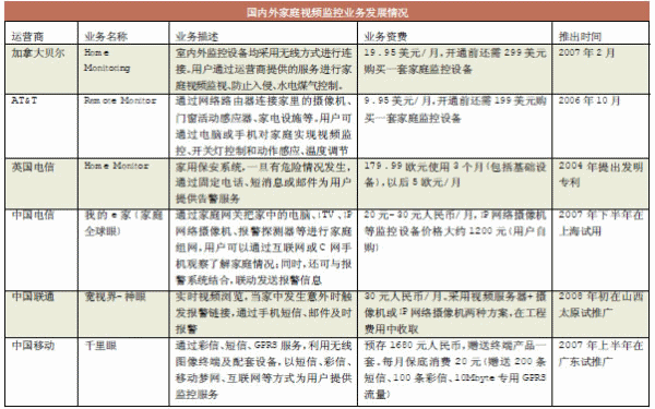 例如,在中國(guó)臺(tái)灣地區(qū),移動(dòng)運(yùn)營(yíng)商已經(jīng)推出了基于3G移動(dòng)網(wǎng)絡(luò)的無(wú)線視頻監(jiān)控業(yè)務(wù),用戶可通過(guò)3G手機(jī)對(duì)家庭情況進(jìn)行監(jiān)控。同時(shí),3G家庭終端(前端監(jiān)控設(shè)備)具備專業(yè)的無(wú)線遠(yuǎn)程監(jiān)控功能,當(dāng)出現(xiàn)盜賊入侵、意外失火或是煤氣泄漏等狀況,它會(huì)把報(bào)警信息發(fā)送到主人手機(jī)上,讓主人及時(shí)獲悉并做出處理。3G家庭終端還可以根據(jù)指令拍攝下家中的實(shí)時(shí)視頻畫面,并發(fā)到主人手機(jī)中供以后取證,這對(duì)于中高端家庭來(lái)說(shuō),具有相當(dāng)?shù)恼T惑力。