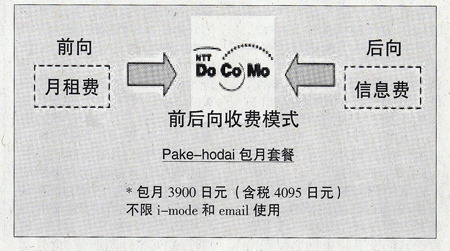 當(dāng)然,移動(dòng)互聯(lián)網(wǎng)運(yùn)營(yíng)不僅可以前向向用戶收費(fèi),還可以采取后向的廣告收費(fèi)模式,如圖NTT DoCoMo的數(shù)據(jù)業(yè)務(wù)資費(fèi)模式: