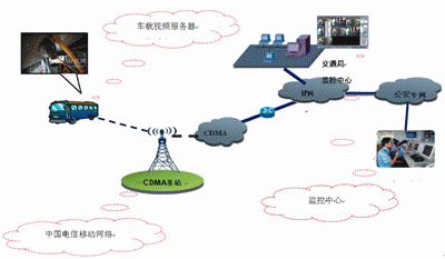 通過(guò)電信CDMA無(wú)線(xiàn)網(wǎng)絡(luò),采集移動(dòng)車(chē)輛視頻信息,傳送給監(jiān)控中心實(shí)現(xiàn)遠(yuǎn)程視頻瀏覽、遠(yuǎn)程控制功能,同時(shí)車(chē)載終端連接LCD觸摸屏并安裝GPS模塊后實(shí)現(xiàn)衛(wèi)星定位和語(yǔ)音自導(dǎo)航功能。系統(tǒng)發(fā)送監(jiān)控及定位信息給調(diào)度監(jiān)控中心,監(jiān)控中心實(shí)現(xiàn)大屏幕視頻圖像、電子地圖顯示,能及時(shí)、準(zhǔn)確地對(duì)車(chē)輛進(jìn)行調(diào)度、監(jiān)控和管理。監(jiān)控中心也可以向車(chē)輛發(fā)送調(diào)度、路況、新聞等各種信息,提供更好的服務(wù)。