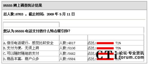 據(jù)招商銀行95555電話支付用戶調(diào)查表明,招商銀行的電話呼叫中心確實(shí)讓用戶感受到了“支付方便,無(wú)須上網(wǎng)”(占75%);在消費(fèi)方式上,“可以隨時(shí)隨地的支付”(80%);在消費(fèi)者滿意度上,“信任電話銀行,感覺(jué)比較方便”(占71%),等等。這一切都說(shuō)明,該方案為招商銀行提供了有效滿足客戶需求的,個(gè)性化解決方案。