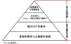 擁有4億多注冊(cè)用戶的騰訊,占有中國(guó)即時(shí)通信80%的市場(chǎng)份額,互聯(lián)網(wǎng)行業(yè)贏家通吃的定律顯露無(wú)疑,騰訊在海量用戶群基礎(chǔ)上開(kāi)發(fā)的各種業(yè)務(wù)都在行業(yè)排名前列。當(dāng)電視服務(wù)的規(guī)模用戶群得以穩(wěn)固,基于用戶規(guī)模之上的多元化服務(wù)集成成為可能,對(duì)電視服務(wù)形成高度依賴的用戶群具備了價(jià)值挖掘的條件。人人交互、人機(jī)交互依托基礎(chǔ)的電視分眾門戶化應(yīng)用,形成了最初的用戶使用習(xí)慣;依托電視分眾門戶化集成的積累,建立用戶識(shí)別、用戶分析、收視分析、用戶數(shù)據(jù)交換的技術(shù)體系,用以支撐未來(lái)多元化娛樂(lè)與服務(wù)的開(kāi)發(fā);贗PTV的交互能力,依托電視終端的易用性與舒適性,用戶價(jià)值、終端價(jià)值被充分挖掘,電視服務(wù)開(kāi)始對(duì)其他媒介形式(含互聯(lián)網(wǎng))的用戶形成吸納。圍繞交互、商務(wù)需求的電子貨幣體系逐漸完善,電視進(jìn)入可有效運(yùn)營(yíng)、可便捷支付的良性的產(chǎn)業(yè)循環(huán),IPTV多元化業(yè)務(wù)之門打開(kāi)。