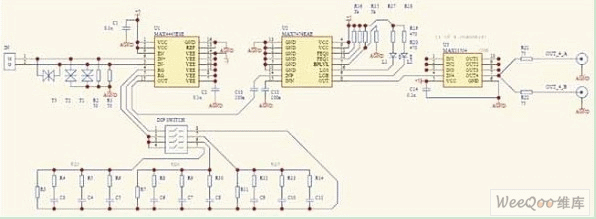 在本方案中,我們采用MAX4445配合外部阻容均衡網(wǎng)絡(luò)固定補(bǔ)償特定的傳輸距離,并結(jié)合MAX7474自動(dòng)均衡的特點(diǎn)來(lái)補(bǔ)償網(wǎng)線質(zhì)量、安裝距離和阻容器件參數(shù)分散性等帶來(lái)的差異,很好地解決了1200米視頻信號(hào)的自適應(yīng)傳輸。