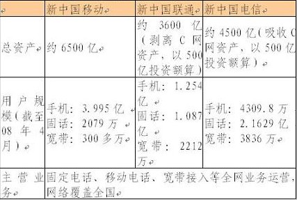 圖:重組后三大運(yùn)營(yíng)商基本情況
