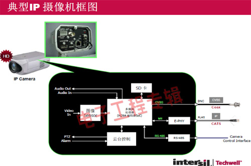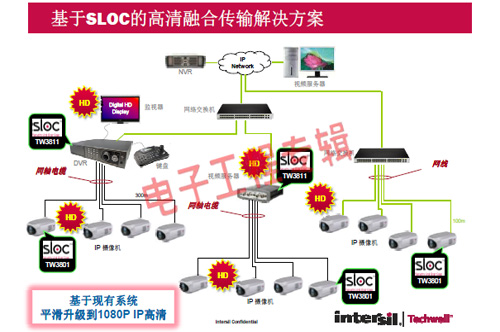 革命性的Intersil Techwell SLOCTM(Security Link over Coax)同軸電纜復(fù)合視頻傳輸解決方案是可通過一條同軸電纜同時傳輸模擬 CVBS 視頻和高清數(shù)字 IP 視頻信號的先進調(diào)制解調(diào)器解決方案,其采用最新MODEM PHY技術(shù)的傳輸解決方案,可以基于同軸電纜同時傳輸高清IP碼流和標(biāo)清模擬實時視頻。