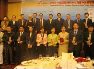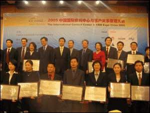 賽迪呼叫執(zhí)行總裁李峻博士榮獲“2005中國最佳呼叫中心管理人獎(jiǎng)”(第二排左四,代領(lǐng))