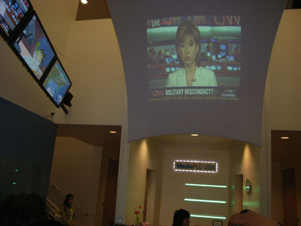 MediaFLO USA的前臺(tái)大廳布滿(mǎn)屏幕,說(shuō)明它有媒體血緣。
