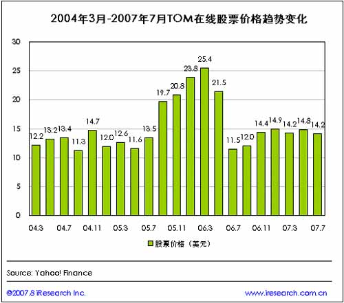 外界普遍認(rèn)為T(mén)OM在線的退市是因?yàn)槠淠腹綯OM集團(tuán)對(duì)TOM在線股價(jià)長(zhǎng)期被低估而感到不滿。盡管或許存在著股價(jià)被低估的可能性,但股價(jià)被低估并不與退市之間成必然的因果關(guān)系,與TOM在線經(jīng)營(yíng)相似業(yè)務(wù)的空中網(wǎng),股價(jià)長(zhǎng)期停留在15美元以下,近一年內(nèi)更是僅維持在10美元以下。