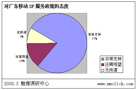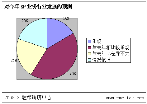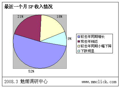 最近公布的空中網(wǎng)財(cái)務(wù)報(bào)表的數(shù)據(jù)顯示空中網(wǎng)總收入環(huán)比增長(zhǎng),結(jié)合之前廣東移動(dòng)推出:廣東移動(dòng)向重服務(wù)轉(zhuǎn)變 首推“6+1”服務(wù),SP行業(yè)可以說(shuō)是暖風(fēng)頻吹。魅媒無(wú)線(xiàn)行業(yè)調(diào)研中心隨機(jī)從3月3日到3月5日隨記電話(huà)采訪(fǎng)50多家全網(wǎng)以及廣東省網(wǎng)SP公司相關(guān)負(fù)責(zé)人,對(duì)最近的SP行業(yè)的政策調(diào)整進(jìn)行調(diào)查,有以下的數(shù)據(jù):