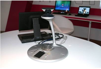 在耐心聽完介紹后,禁不住誘惑,我便親自做了現(xiàn)場體驗(yàn),原來這套系統(tǒng)所使用的360o攝像頭不同于一般的攝像頭,它集4個(gè)攝像頭以及USB設(shè)備為一體,不改變位置就能輕松實(shí)現(xiàn)360度全景覆蓋,讓所有人真正面對面交流。而投影儀的界面設(shè)定更是人性化,界面分上下兩部份,上半部分顯示的是PPT內(nèi)容和發(fā)言者,下半部分顯示的是與會人員。而它的智能語音識別系統(tǒng)更是讓人叫絕,投影儀上的發(fā)言區(qū)頭像根據(jù)發(fā)言者的聲音自動(dòng)更換,而不受人聲以外的任何聲音的干擾。系統(tǒng)并附帶情景解說詞,系統(tǒng)會自動(dòng)介紹與會人員所在地。在投放PPT界面旁邊有個(gè)信息欄,在上面能夠看到負(fù)責(zé)人的在線信息,并且可以選擇最合適的方式進(jìn)行溝通,不但可以發(fā)即時(shí)消息和傳輸文件,還可以進(jìn)行語音通話,甚至可以直接用語音連接辦公室電話,只要有網(wǎng)絡(luò),隨便哪里都可以接得到辦公室電話。