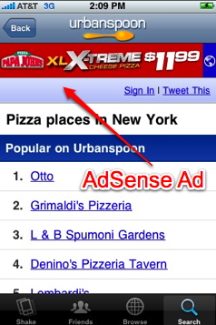 AdSense旋風(fēng)已經(jīng)刮到了iPhone和Android應(yīng)用程序里,目前iPhone的UrbanSpoon和Android的Shazam都已經(jīng)開始集成Mobile AdSense,根據(jù)當(dāng)前應(yīng)用所顯示的內(nèi)容、你所在的地理位置、應(yīng)用的類別和關(guān)鍵字來(lái)匹配最合適的廣告。目前Mobile AdSense還在beta測(cè)試,只支持iPhone和Android應(yīng)用程序,參加beta測(cè)試的應(yīng)用程序要求每天至少要有10萬(wàn)次的廣告展示機(jī)會(huì),并在4周內(nèi)將內(nèi)置Mobile AdSense的應(yīng)用程序更新上線。