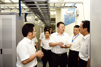 河南洛陽(yáng)市12580家庭服務(wù)呼叫中心經(jīng)過(guò)一段時(shí)間的試運(yùn)行,目前已有200多家家庭服務(wù)業(yè)公司加入該呼叫中心,實(shí)現(xiàn)了保姆、月嫂、保潔、開(kāi)鎖、家教、婚慶、送鮮花、快遞、送餐和鐘點(diǎn)工等十幾項(xiàng)服務(wù),并將逐步擴(kuò)大到50多項(xiàng)服務(wù)。圖為洛陽(yáng)市副市長(zhǎng)高頌革(右三)在洛陽(yáng)移動(dòng)公司視察指導(dǎo)工作。