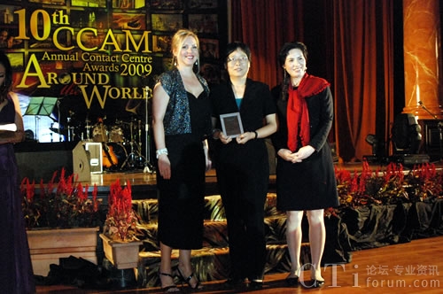 會(huì)議期間,中信銀行信用卡中心副總經(jīng)理金小云代表中國從亞太客服與呼叫中心聯(lián)盟(APCCAL)高級(jí)官員的手中接過了象征著2009亞太呼叫中心行業(yè)最高榮譽(yù)的2009亞太最佳呼叫中心的獎(jiǎng)牌。