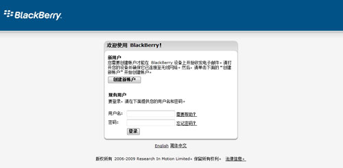 中電信黑莓網(wǎng)絡(luò)服務(wù)注冊(cè)頁面曝光